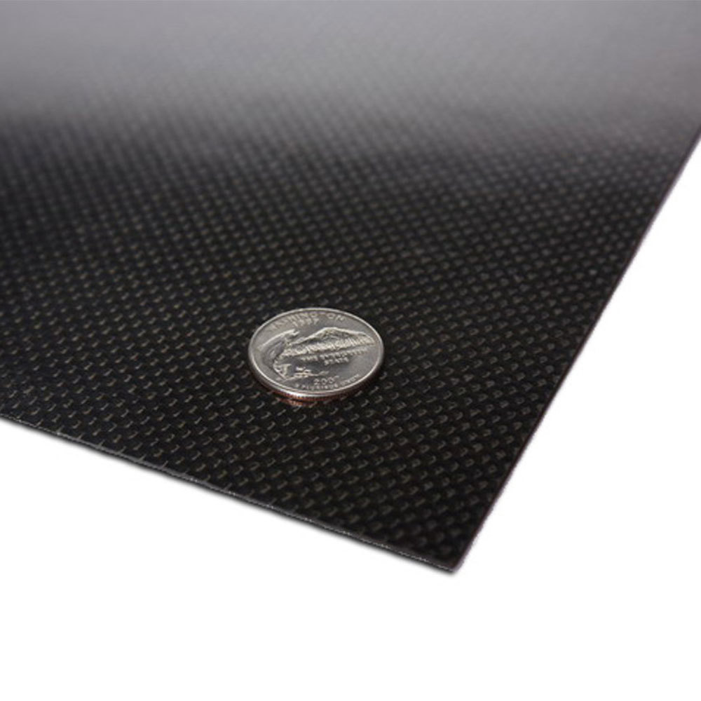 These high-quality carbon fiber sheets come in various thicknesses, made from 100% 3K plain weave carbon fiber and finished with a matte surface on both sides. Unlike many low-cost carbon sheets that are made by pressing two outer skins of carbon fiber over a carbon and resin core, these plates are made with layered sheets of carbon fiber and resin, making them the same strength all the way through.